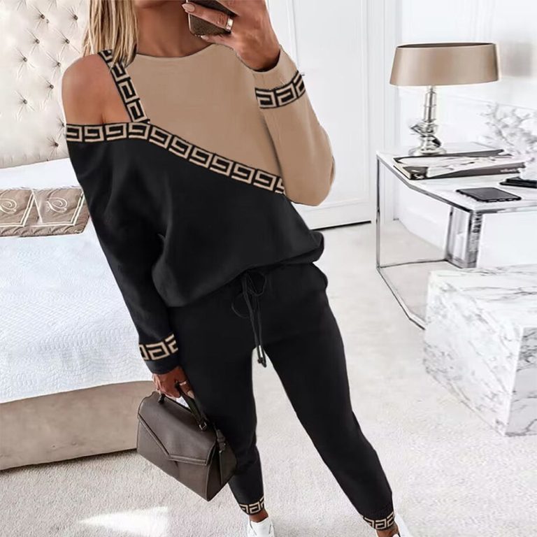 Greek Key Black Tan Print Two Piece Set