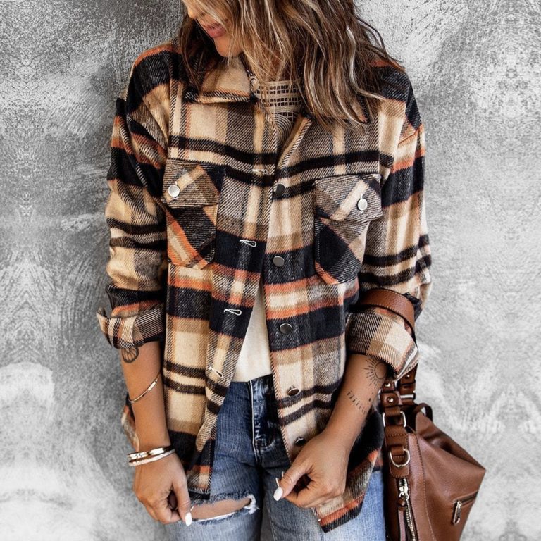 Red White Black Plaid Button Front Long Jacket