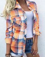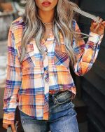 Be the first to review “Blue Orange Plaid Button Front Blouse Top”
