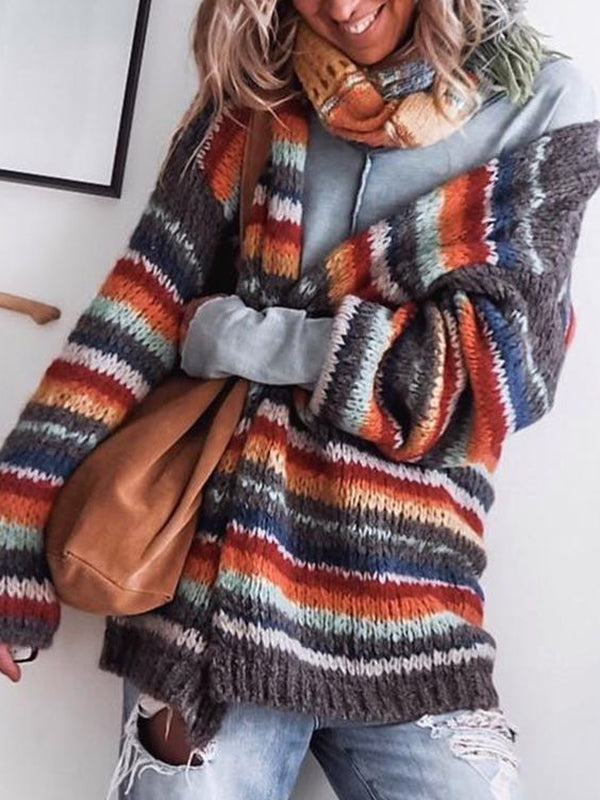 Grey Long Sleeve Striped Outerwear
