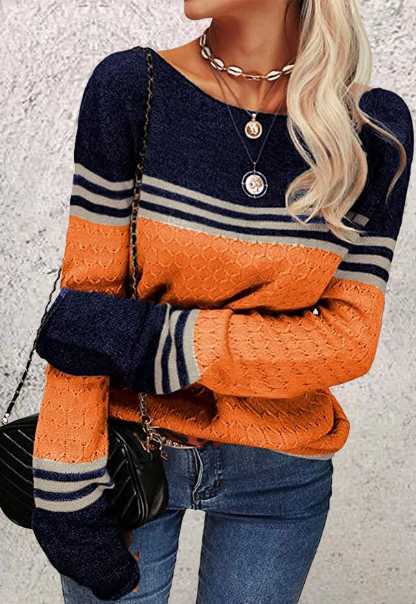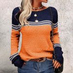 Add a colorful splash or celebrate your favorite sports team with this casual long sleeve top. A waffled texture gives this round neck collar top a cozy vibe, perfect for wearing with denim and your favorite leggings. Stripes and color block print make sure all eyes are on you. Machine wash normal with light colors or hand wash. May be hung up to dry or lay flat. Light ironing if needed.