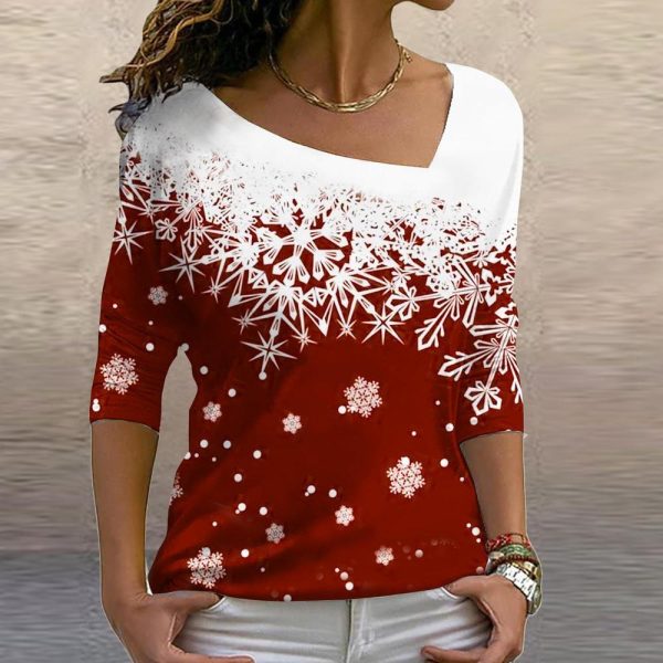 Red Holiday Snowflake Asymmetrical Long Sleeve Top Original price was: $63.99.Current price is: $42.99.